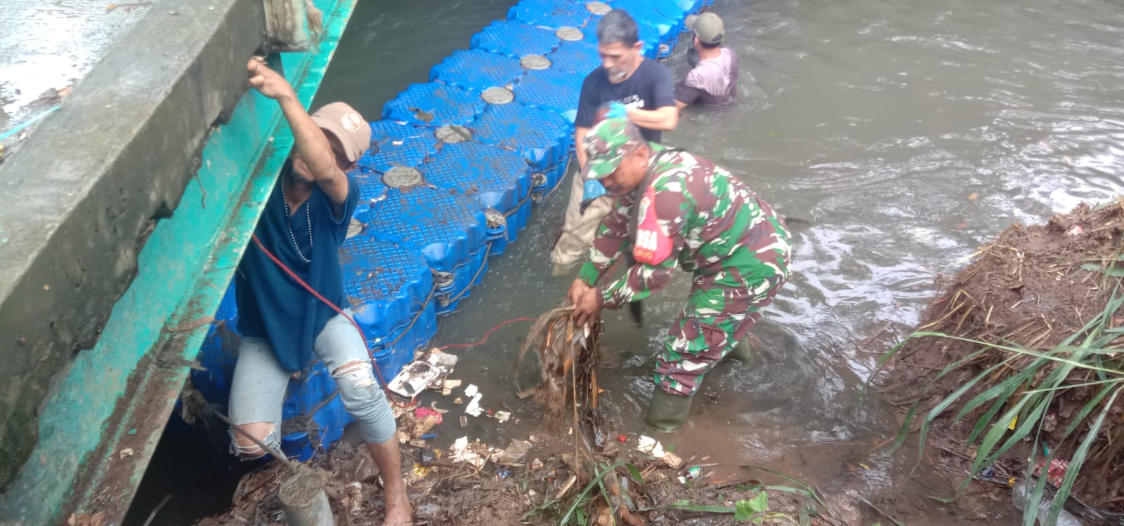 Babinsa Curug Bersama Komunitas Sahabat Alam Nusantara Bersihkan Kali Cipinang