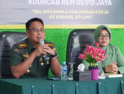 Komandan Kodim (Dandim) 0508/Depok bersama Ketua Persit Kartika Chandra Kirana (KCK) Cabang XXII melaksanakan kunjungan kerja ke Markas Koramil 07/Limo, Kamis (27/11/2025). Kegiatan berlangsung di Markas Koramil 07/Limo, Jl. Raya Limo, Kelurahan Limo, Kecamatan Limo, Kota Depok, dan dihadiri sekitar 100 peserta dari unsur TNI, pemerintah daerah, serta tokoh masyarakat.