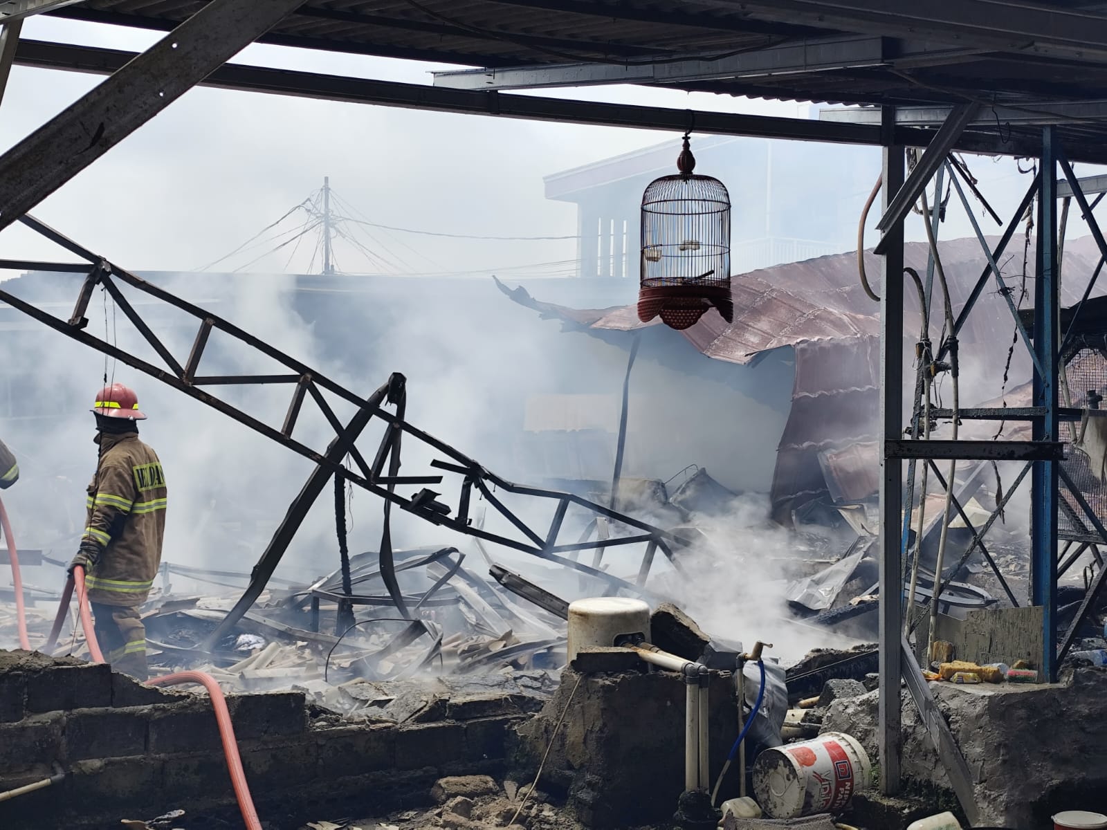 Teriakan tersebut didengar oleh Anissah, tetangga yang berada tidak jauh dari lokasi kejadian. Api dengan cepat membesar dan menghanguskan sebagian besar isi bangunan. Warga kemudian segera menghubungi aparat kewilayahan, termasuk Babinsa dan Bhabinkamtibmas, yang selanjutnya meneruskan laporan ke petugas pemadam kebakaran.