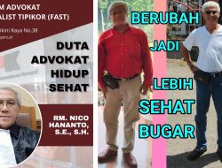 Forum Advokat Spesialis Tindak Pidana Korupsi atau Forum Advokat Spesialist Tipikor (FAST) menunjuk advokat RM Nico Hananto, S.E., S.H. sebagai Duta Advokat Hidup Sehat.