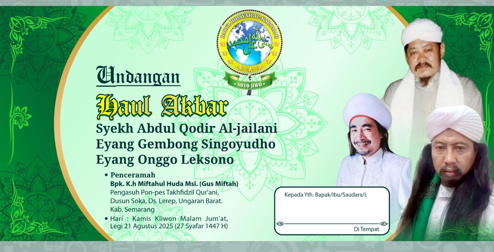 Dalam rangka memperingati Haul Akbar Syekh Abdul Qodir Al Jaelani, Eyang Gembong Singo Yudho, dan Eyang Onggo Leksono, Pimpinan Padepokan Hidayah Al Karomah, Karanggede, Blumbang Wetan, Boyolali kembali menggelar acara tahunan yang penuh makna.