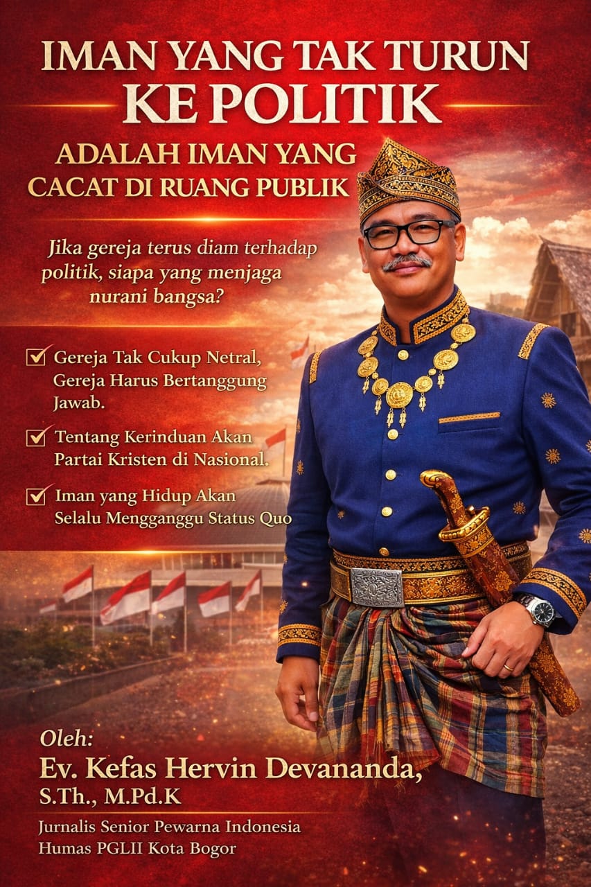 Anak Tuhan tidak tabu berpolitik. Yang tabu adalah menyembunyikan iman ketika kekuasaan membutuhkan nurani. Gereja tidak boleh puas hanya membaptis jemaat, tetapi gagal membentuk pemimpin.