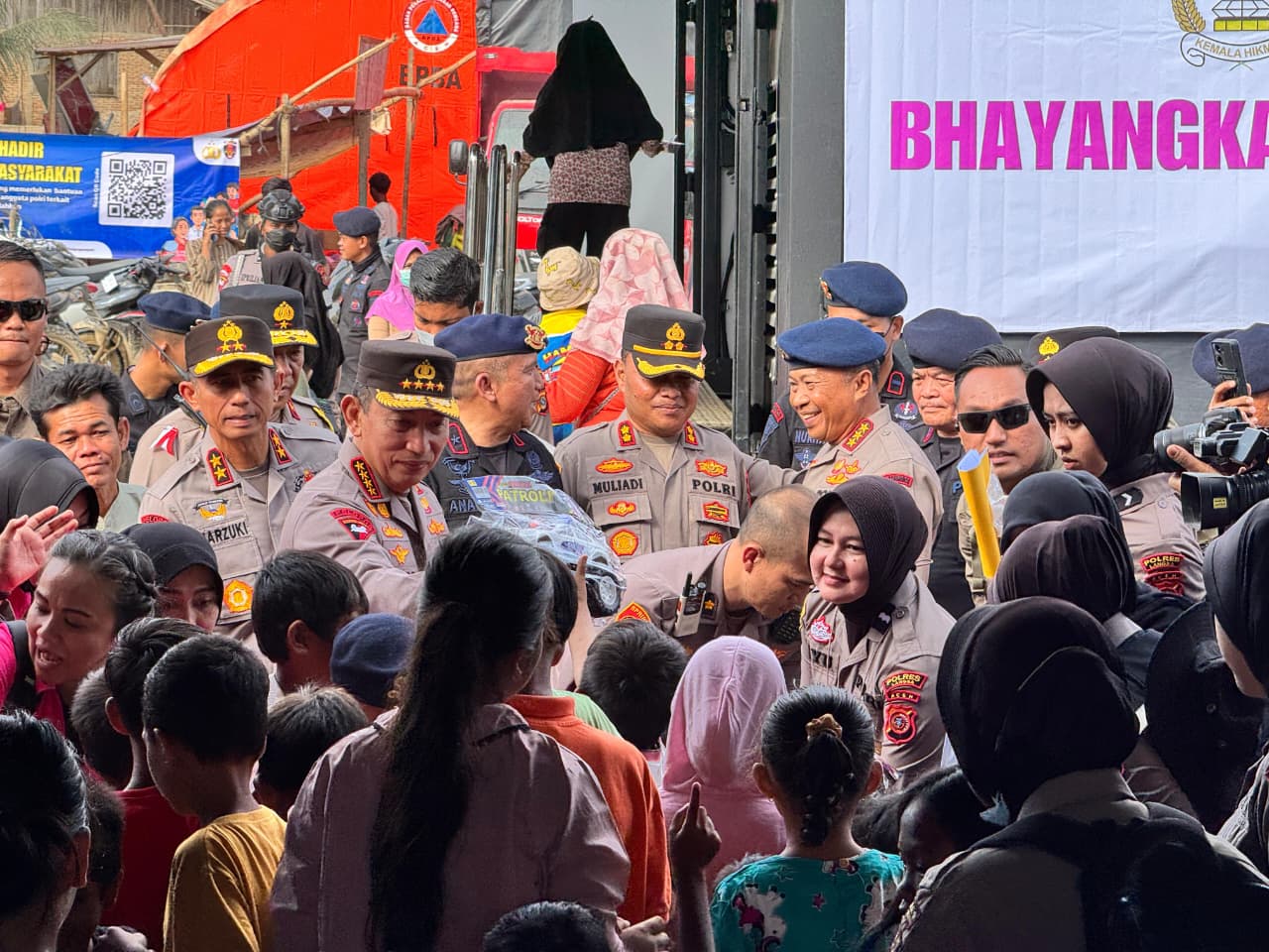 Kapolri Jenderal Listyo Sigit Prabowo meninjau posko pengungsian bencana alam di wilayah Aceh Tamiang, Kamis (11/12/2025). Dalam kesempatan itu, Sigit menyalurkan bantuan untuk masyarakat.