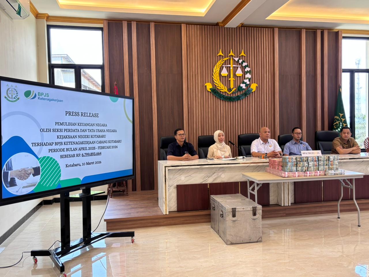 Kegiatan penyelesaian penagihan tersebut berlangsung pada Selasa, 10 Maret 2026, pukul 11.00 WITA di Aula Kejaksaan Negeri Kotabaru.