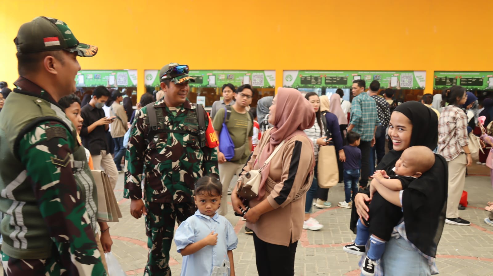Terlihat situasi Ragunan cukup padat pengunjung, Personil Kodim 0504/Jakarta Selatan yang bergabung dengan Petugas Pos Pam Nataru Ragunan menunjukkan sinergi yang kuat dalam menjaga kamtibmas di area tersebut.