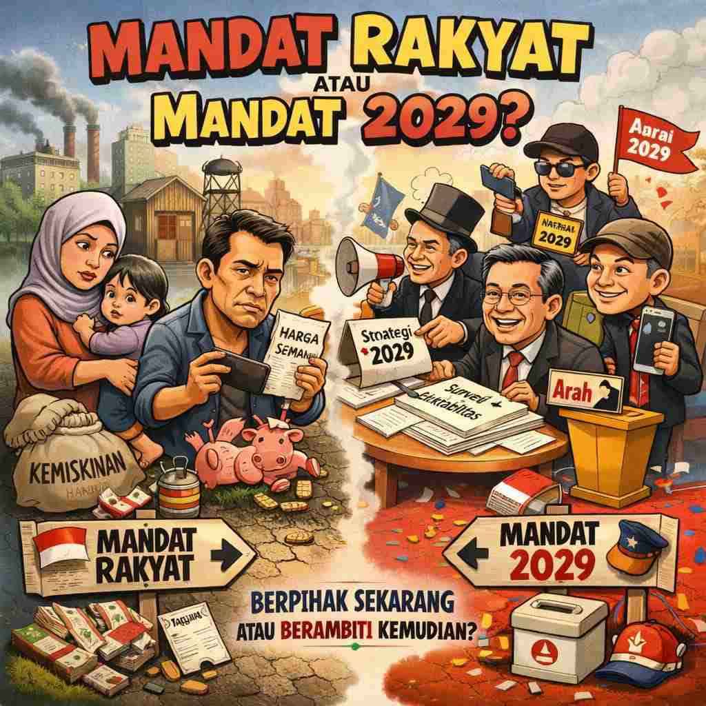 Rakyat tidak memilih untuk menyaksikan elite menyusun skenario masa depan sambil menunda penyelesaian persoalan hari ini. Mereka memilih agar kebutuhan dasar terpenuhi, agar harga stabil, agar lapangan kerja tersedia, agar hukum memberi rasa aman.