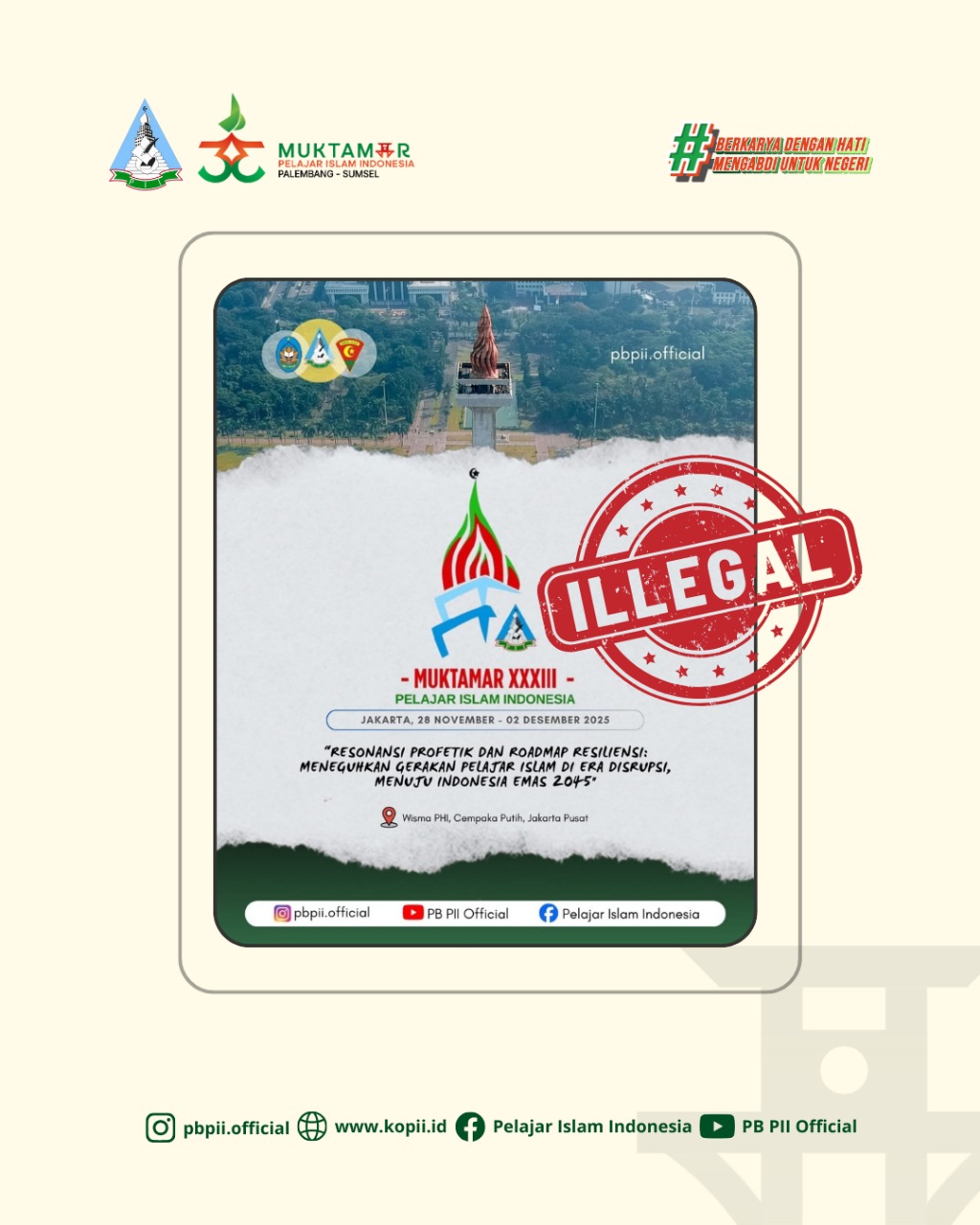 Pengurus Besar Pelajar Islam Indonesia (PB PII) secara resmi menyatakan bahwa forum Muktamar yang digelar di Jakarta adalah ilegal dan inkonstitusional. PB PII menilai pelaksanaan muktamar ini dipaksakan oleh kepentingan sekelompok orang yang tergabung dalam Steering Committee (SC) dan Organizing Committee (OC), tanpa mengindahkan kesiapan substansi dan mekanisme organisasi yang sah.
