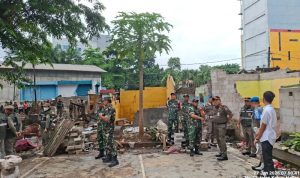 Pemerintah Kota Administrasi Jakarta Timur bersama Tiga Pilar menuntaskan pembongkaran bangunan warga yang berdiri di kawasan Tempat Pemakaman Umum (TPU) Kebon Nanas, Kelurahan Cipinang Besar Selatan, Kecamatan Jatinegara, Selasa.