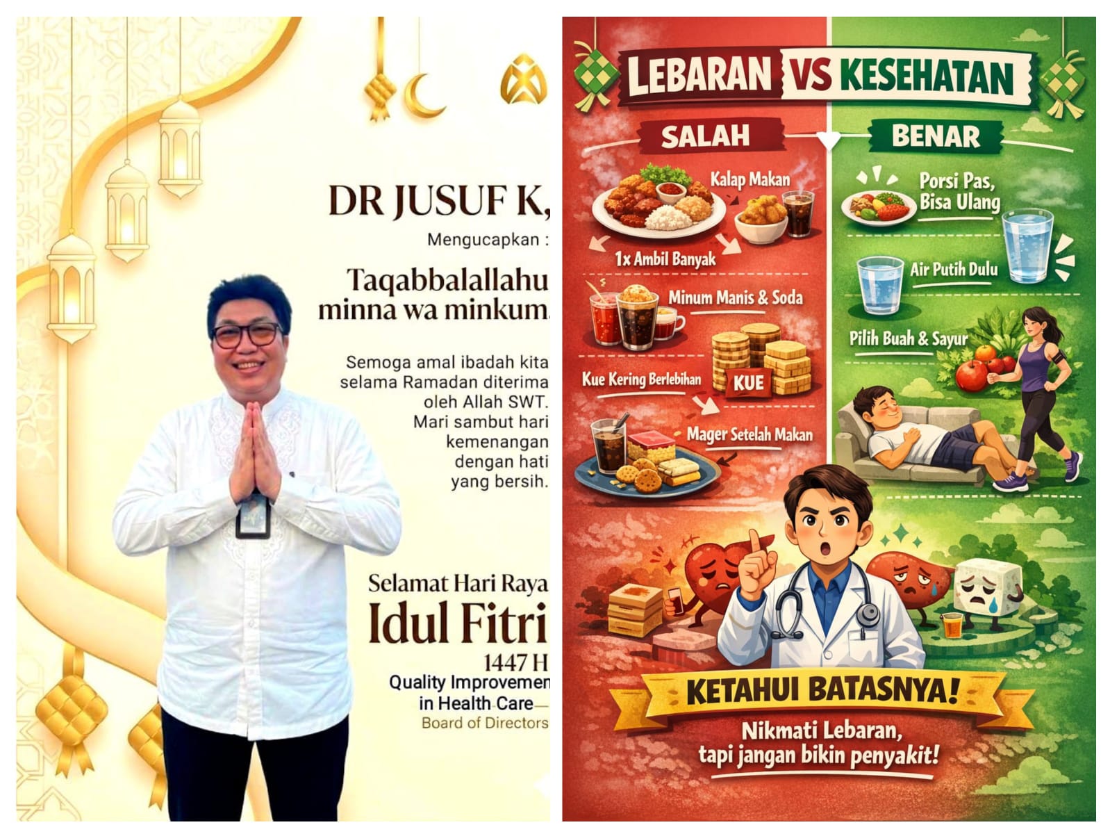 “Lebaran itu bukan masalah makanannya, tapi bagaimana kita mengontrol porsinya. Banyak orang langsung ‘balas dendam’ setelah puasa, padahal tubuh tetap butuh adaptasi,” ujar dr. Jusuf.