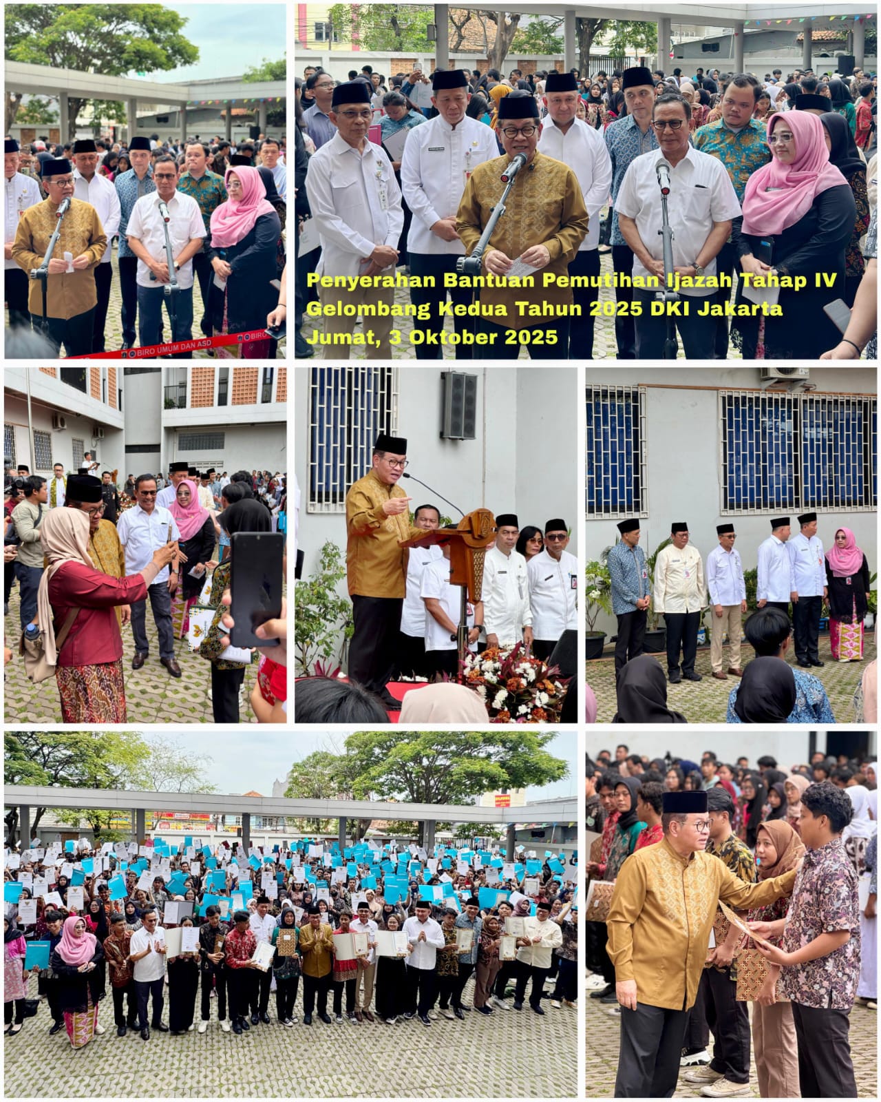 Sebanyak 1.238 ijazah diserahkan kepada siswa-siswi penerima bantuan pemutihan ijazah. Program ini merupakan langkah strategis Pemerintah Provinsi DKI Jakarta untuk mendukung keberlanjutan pendidikan peserta didik serta menjamin kesetaraan akses terhadap dokumen kelulusan bagi seluruh warga. Adapun pemutihan Ijazah ini adalah untuk Tahap IV, Gelombang Kedua Tahun 2025.