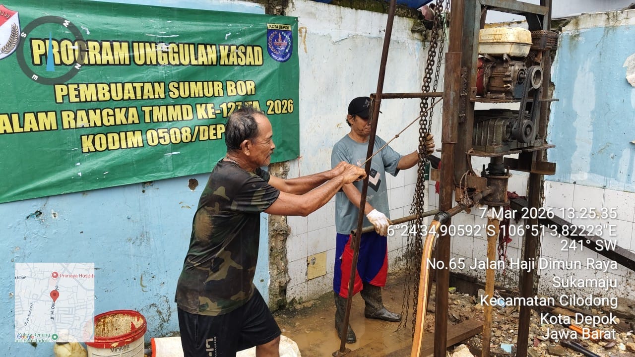 Sementara itu, pembuatan Sumur Bor V di Posyandu Mekarsari yang berada di Jalan H. Saan RT 04 RW 28, Kelurahan Abadi Jaya, Kecamatan Sukmajaya, telah mencapai progres sekitar 90 persen.
